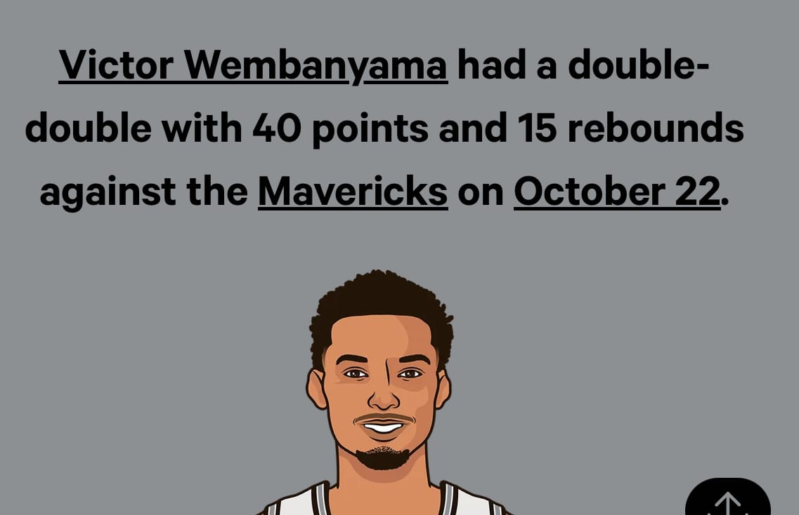 He then proceeded to give the Spurs their best-ever season start with a 5–0 record, all while averaging 30 points, 11-plus rebounds, and at least one steal per game. He seems like an unstoppable force; if this continues, we might be witnessing the rise of the league’s next great ruler.